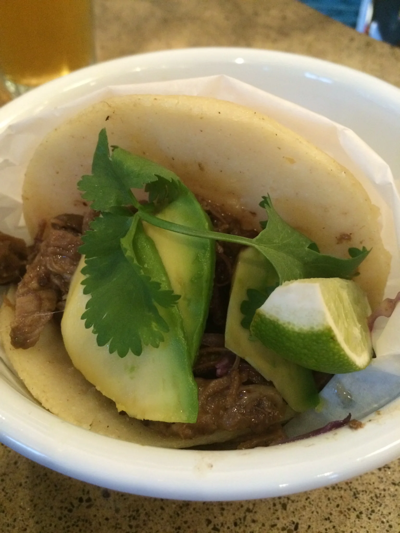 Food was tasty. The South American cuisine came out quickly and was a perfect place to try lots of Colombian inspired small plates. My favorites were the grilled avocado with red quinoa, lentils, and house vinaigrette; and the grilled squid - perfectly charred and tender - this is how squid should be served, branch out of your fried calamari comfort zone. The stuffed arepa did not impress me, it was a little too dense and the filling needed seasoning and tang.