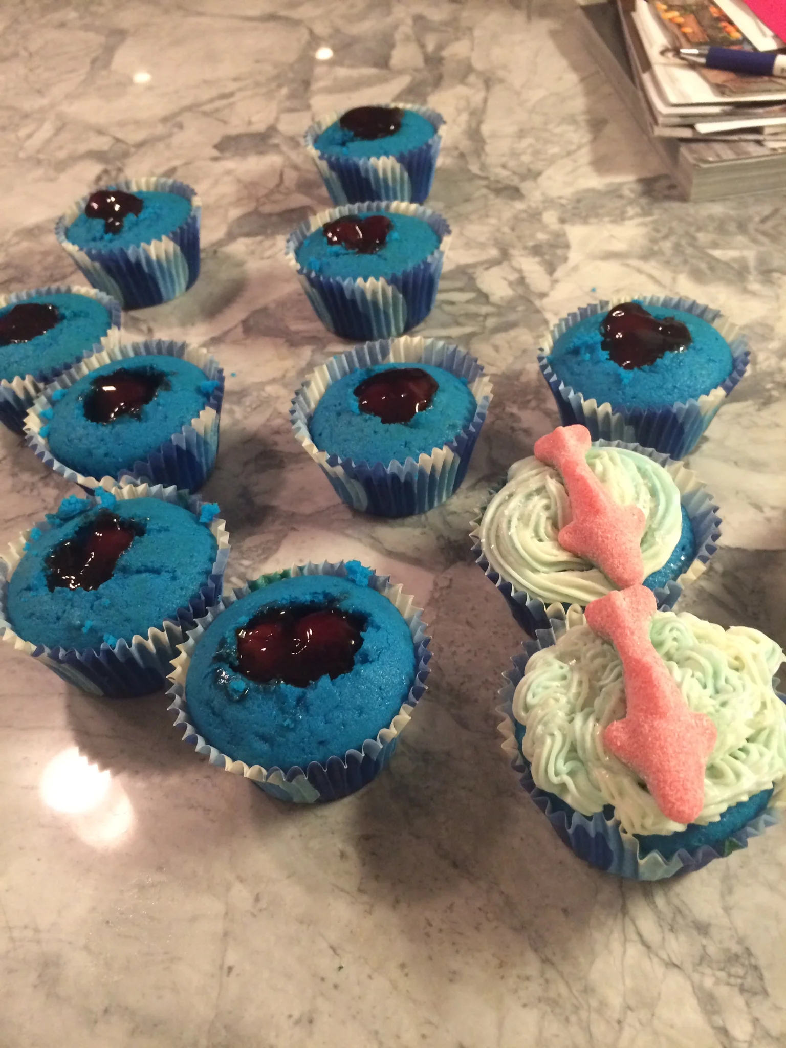 **Hangry District Tip: Save all the cupcake holes and put them in a bowl. Add the leftover frosting, cherry filling and gummy sharks for a shark infested surprise for your hangry boyfriend/girlfriend/mom/dad/roommate/cat/dog/shark..... it's delicious.